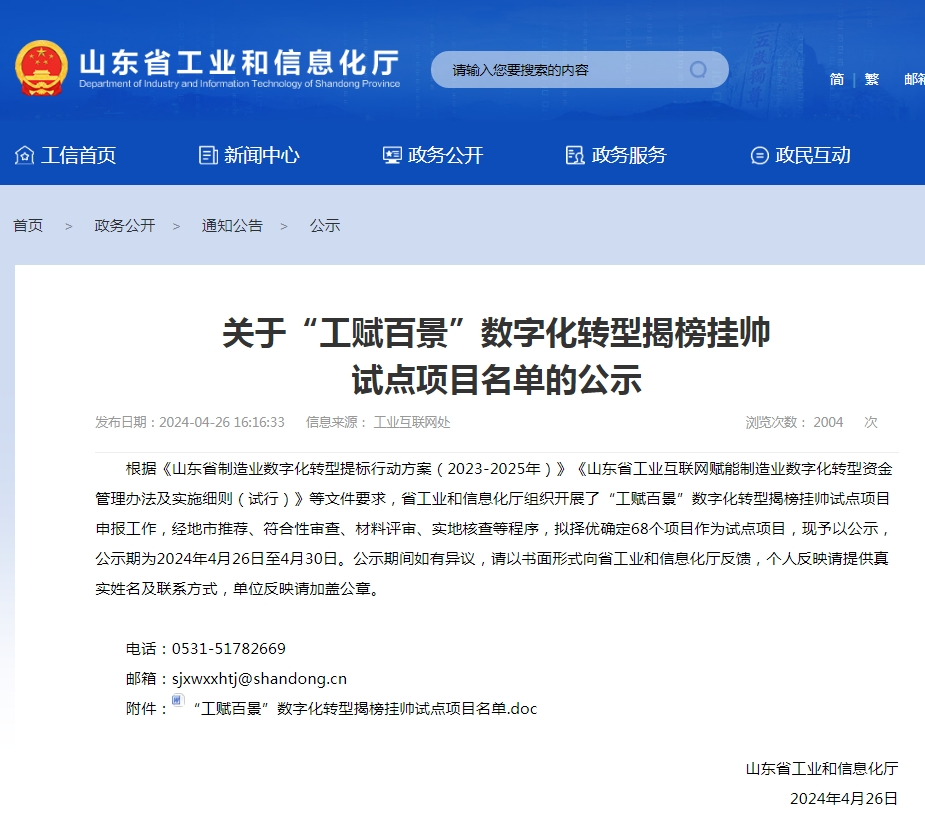泰森日盛集團入圍山東“工賦百景”數字化轉型揭榜掛帥試點項目